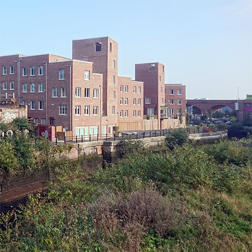 The name BottleWorks was inspired by the adjacent former Liddle-Henzell Ouseburn glass works site, manufacturing bottles between the 1880s and the 1920s, of which only the furnace arches currently survive.